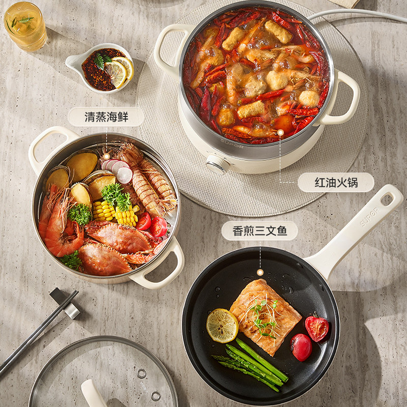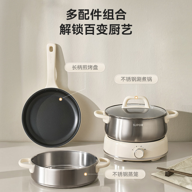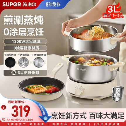 苏泊尔电火锅家用0涂层煎涮蒸炖多功能大火力可分体不粘电煮锅