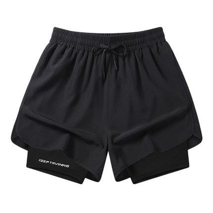SMILE ISLAND运动跑步短裤马拉松田径美式速干内衬假两件训练