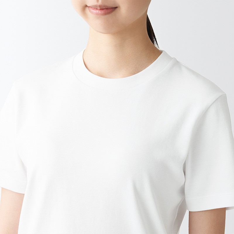MJ无印100%纯棉短袖t恤女夏季2025新款女装大码半袖白色不透上衣