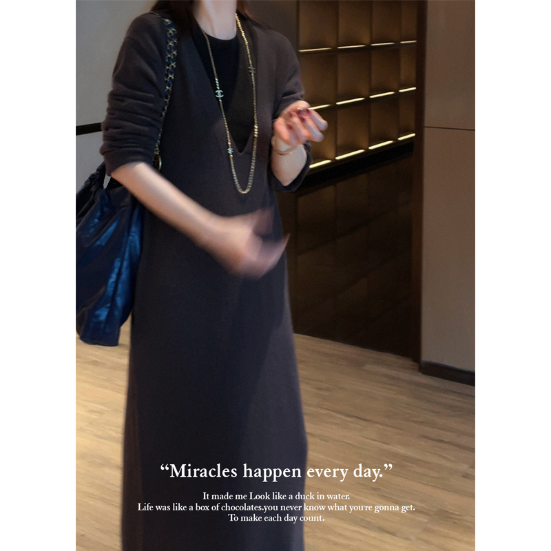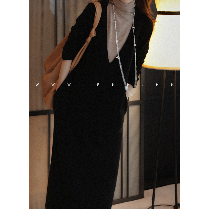 PKH.HK 冬季 特 文私服冬季好搭不费力时髦层叠V领羊毛针织连衣裙