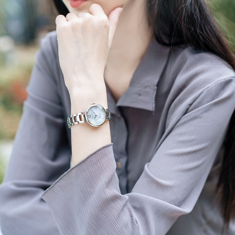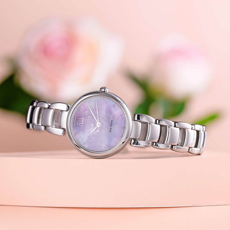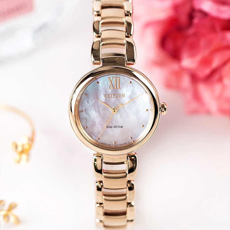 西铁城女表光动能贝母表盘玫瑰金优雅简约EM0533-82Y