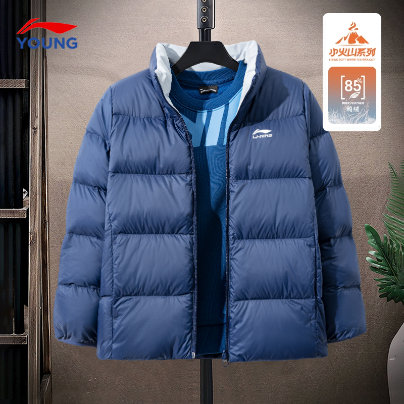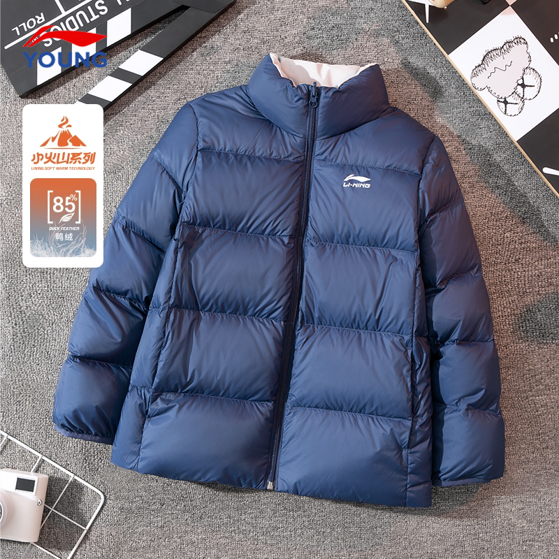 李宁儿童羽绒服男款2025秋冬新款男大童鸭绒短款棉服加厚冬装外套