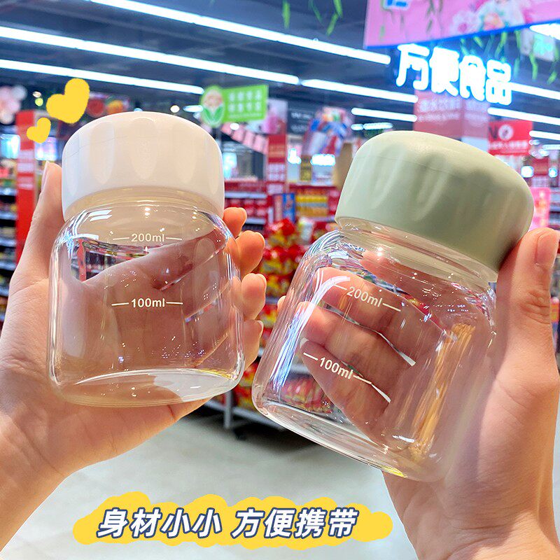 胖胖杯豆浆杯迷你玻璃杯女便携水杯带刻度牛奶咖啡摇摇杯子