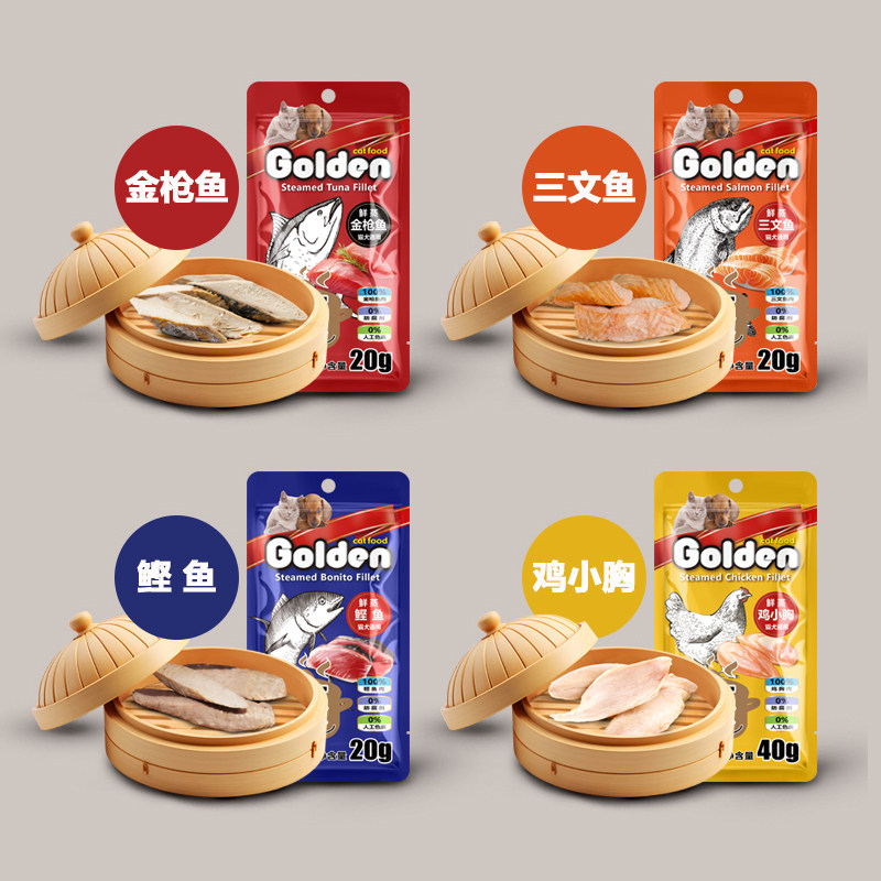 金赏蒸煮鸡肉条干宠物猫猫咪狗狗训练零食猫条鲣鱼金枪鱼三文鱼肉