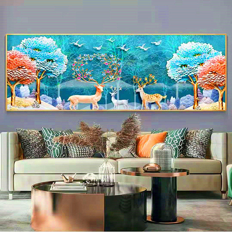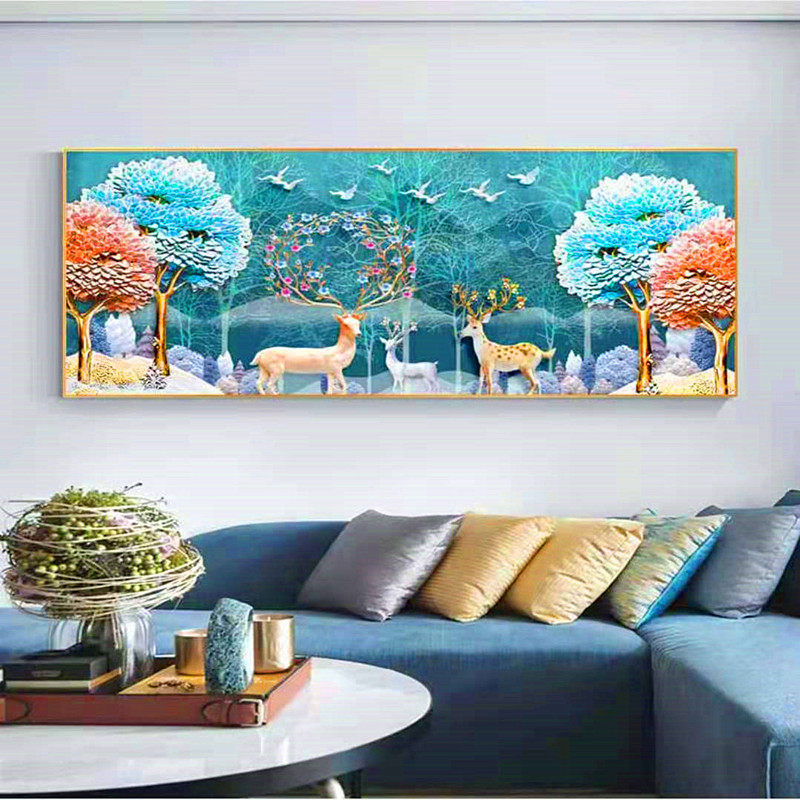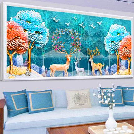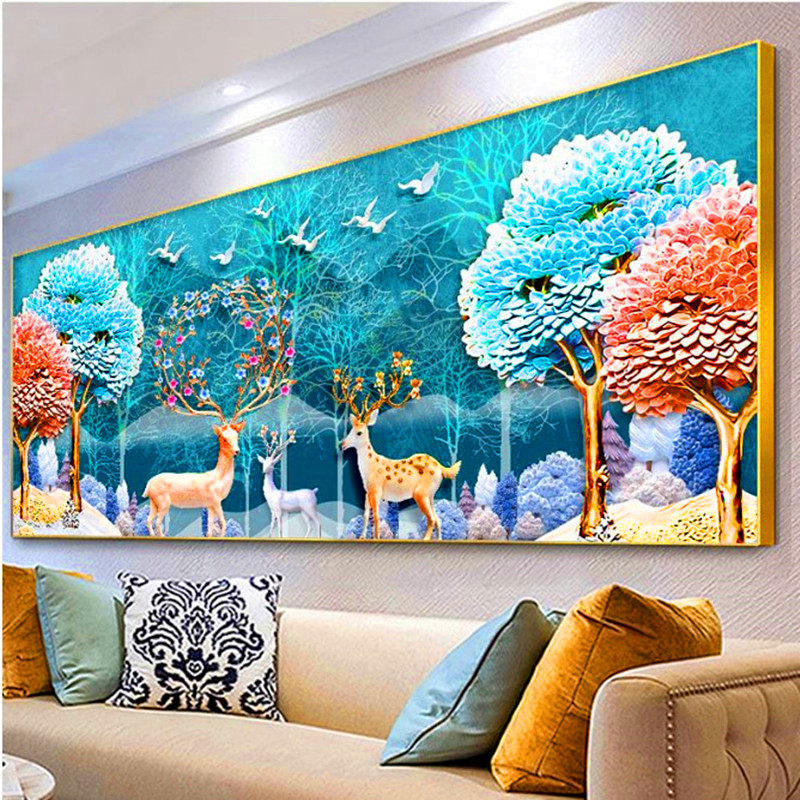 彩珠绣十字绣客厅欧式全珠子绣麋鹿满绣丝线绣穿珠发财树风景串珠