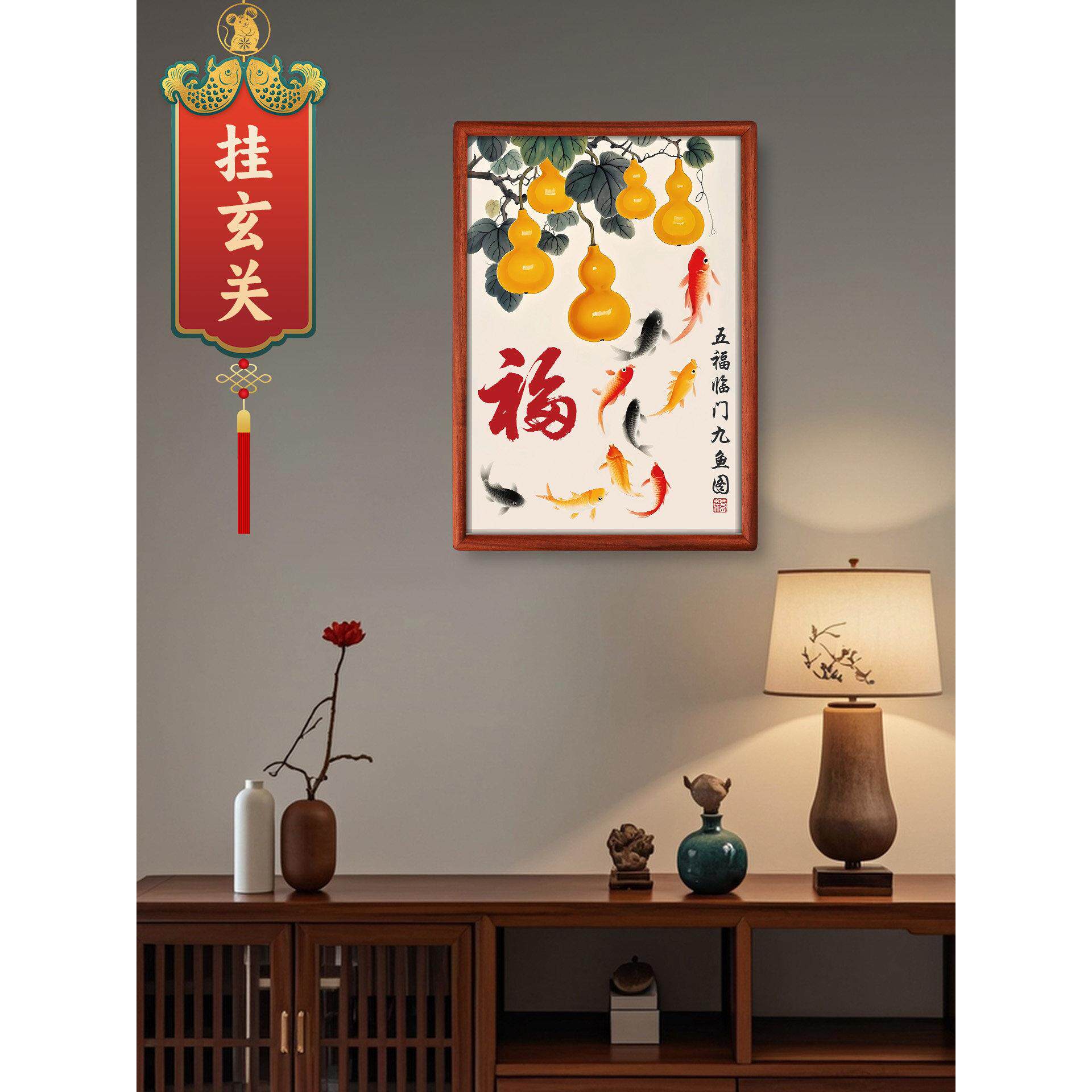 静世莲 五福临门葫芦摆件摆台入户门玄关装饰九鱼图挂画桌面相框