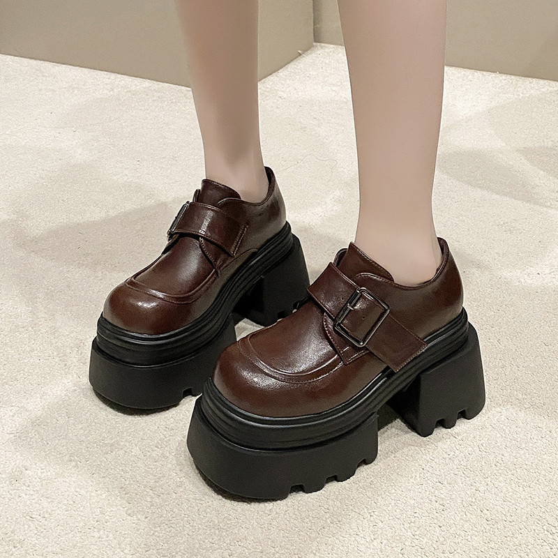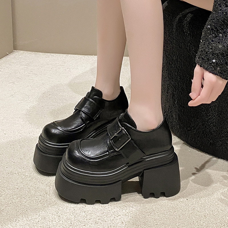 10cm内增高女鞋2026春季新款厚底小个子百搭小皮鞋高跟显瘦乐福鞋