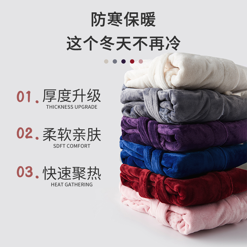 睡袍女冬季情侣一对珊瑚绒浴袍加绒加厚法兰绒男士睡衣秋冬加长款