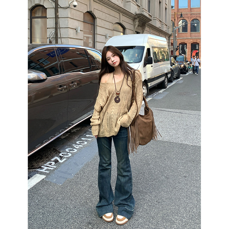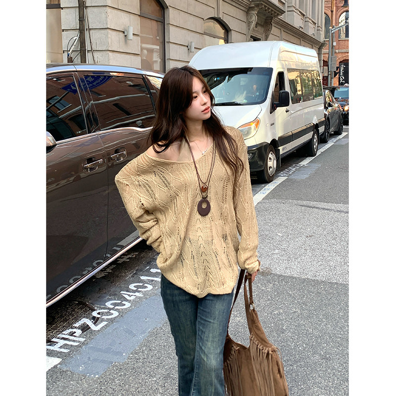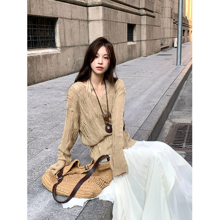 Adan镂空两件套毛衣秋季韩系宽松显瘦百搭挂脖背心长袖罩衫内搭女