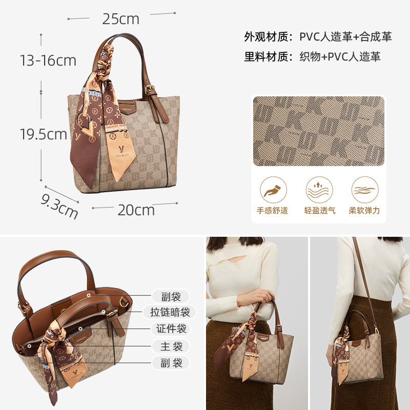 意尔康菜篮子包老花手提妈妈包新款百搭通勤托特包斜挎包女包