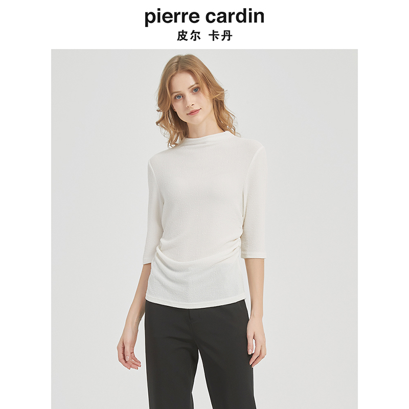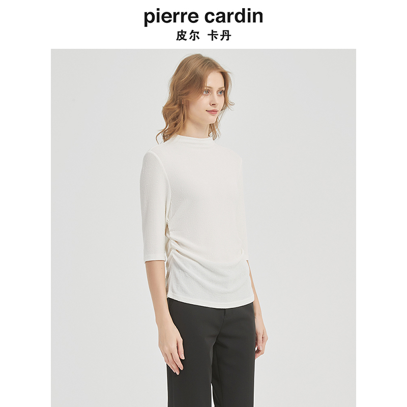皮尔卡丹女装新款极简纯色半高领短袖轻透肌理修身针织打底衫通勤