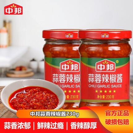 中邦蒜蓉辣椒酱家用拌饭火锅蘸料牛杂肠粉微辣调料辣酱230g瓶装组