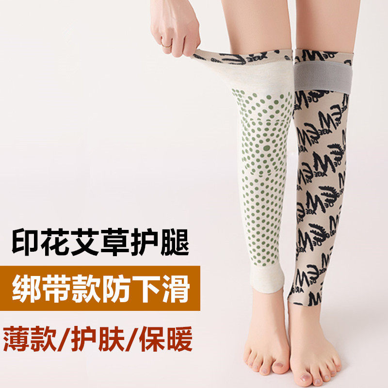德绒绑带护膝保暖防寒印花艾草颗粒空调屋关节凉艾绒保暖加长护腿