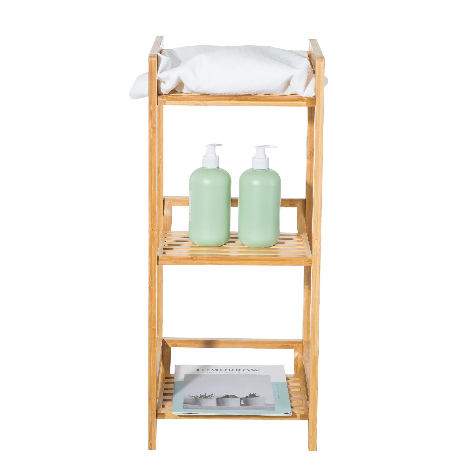 竹立式置物架多层书架创意四层竹木墙上收纳简约书柜
