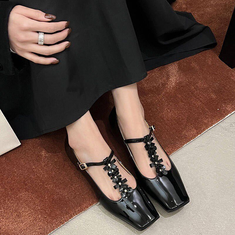 名媛风水钻花朵T型扣带法式绝美