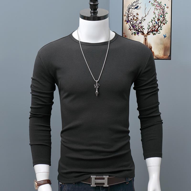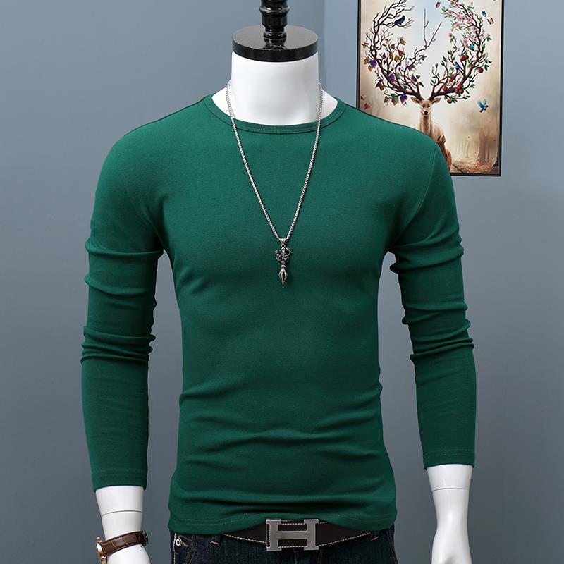 秋季纯棉圆领长袖恤男士大码修身纯色简约内搭打底衫青年秋衣
