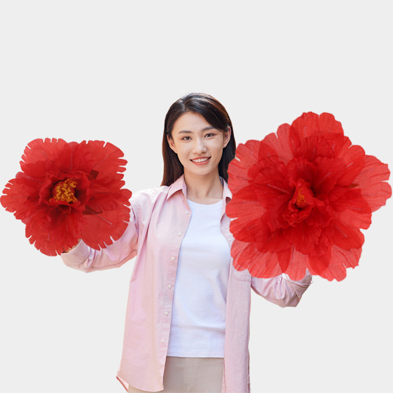 红色牡丹花舞蹈道具表演手持大红花运动会入场花束开幕式创意道具