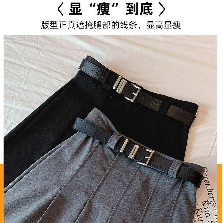 灰色高腰a字百褶半身裙女秋季2024秋冬小个子显瘦中长款裙子