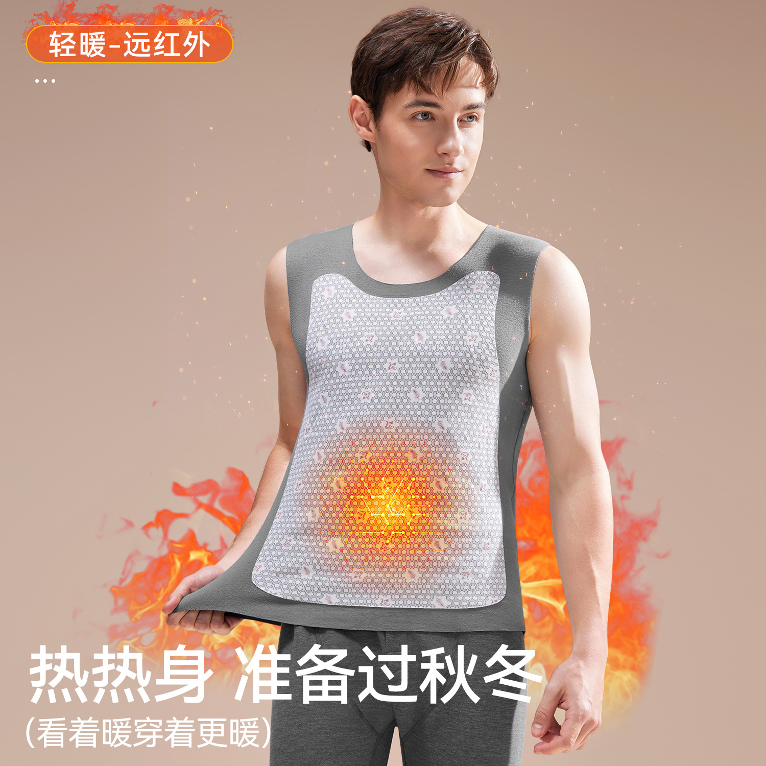 鸭鸭羽绒保暖背心男士加厚加绒发热内衣无痕打底衫秋冬季新款上衣