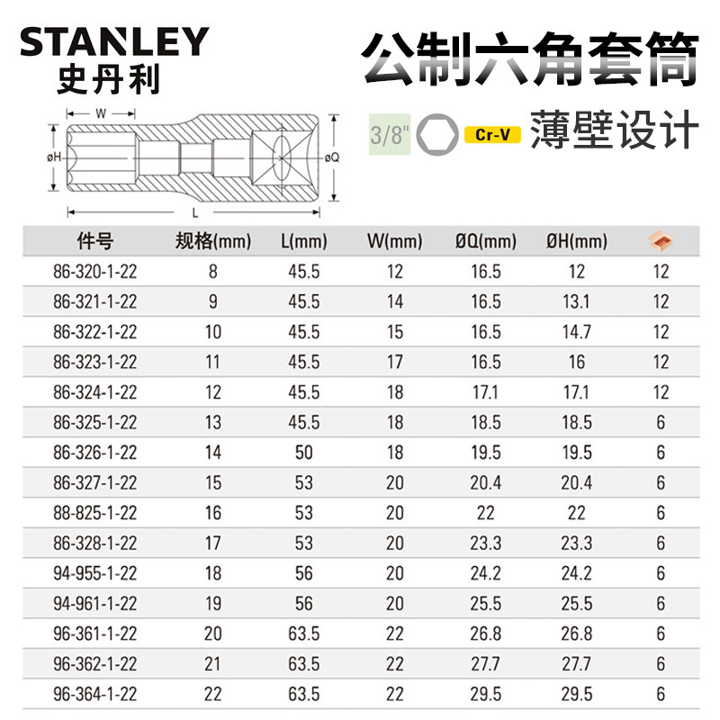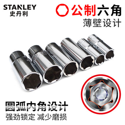 史丹利加长六角套筒中飞套筒扳手头3/810mm系列套头工具8-22mm