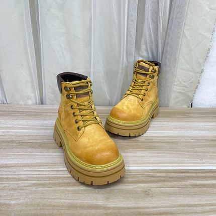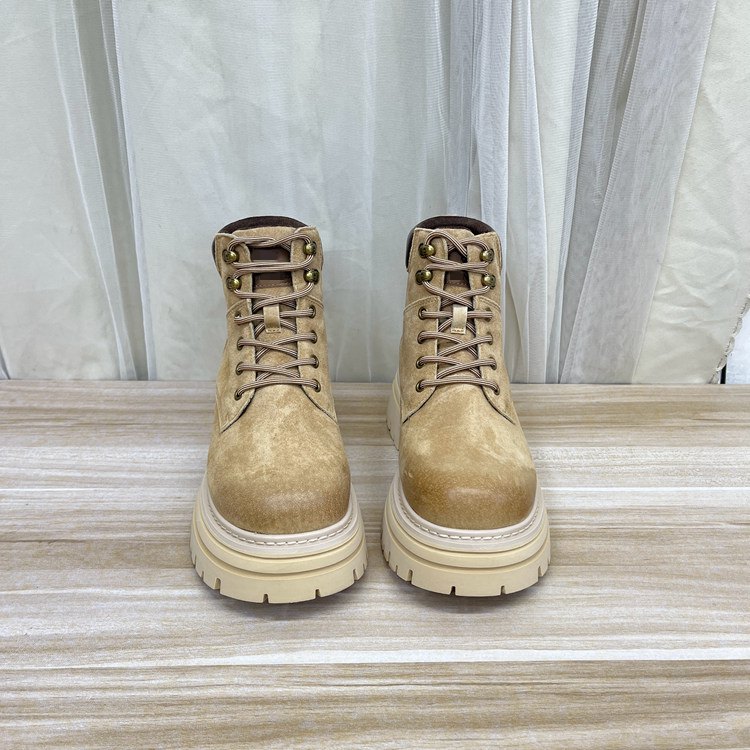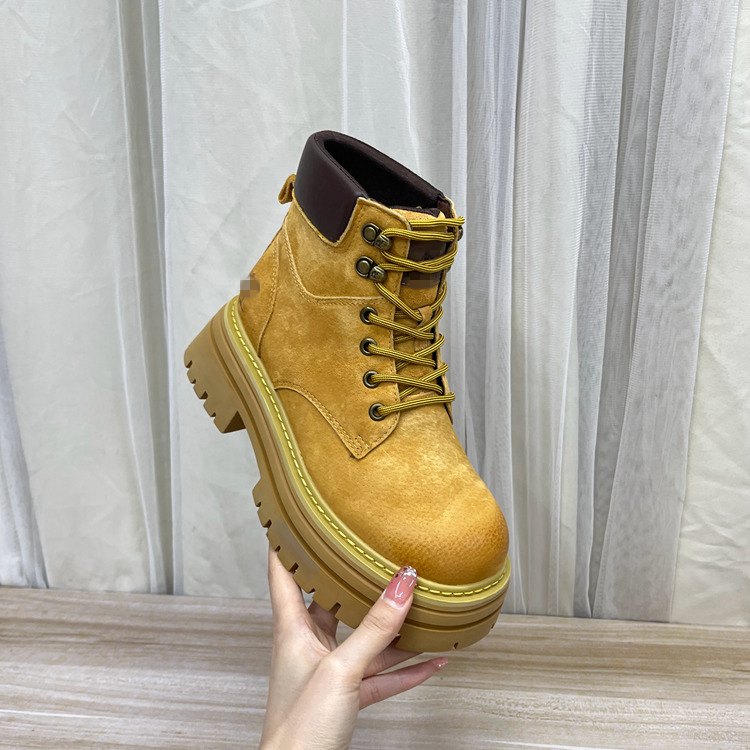 圆头纯色厚底系带短靴户外登山靴
