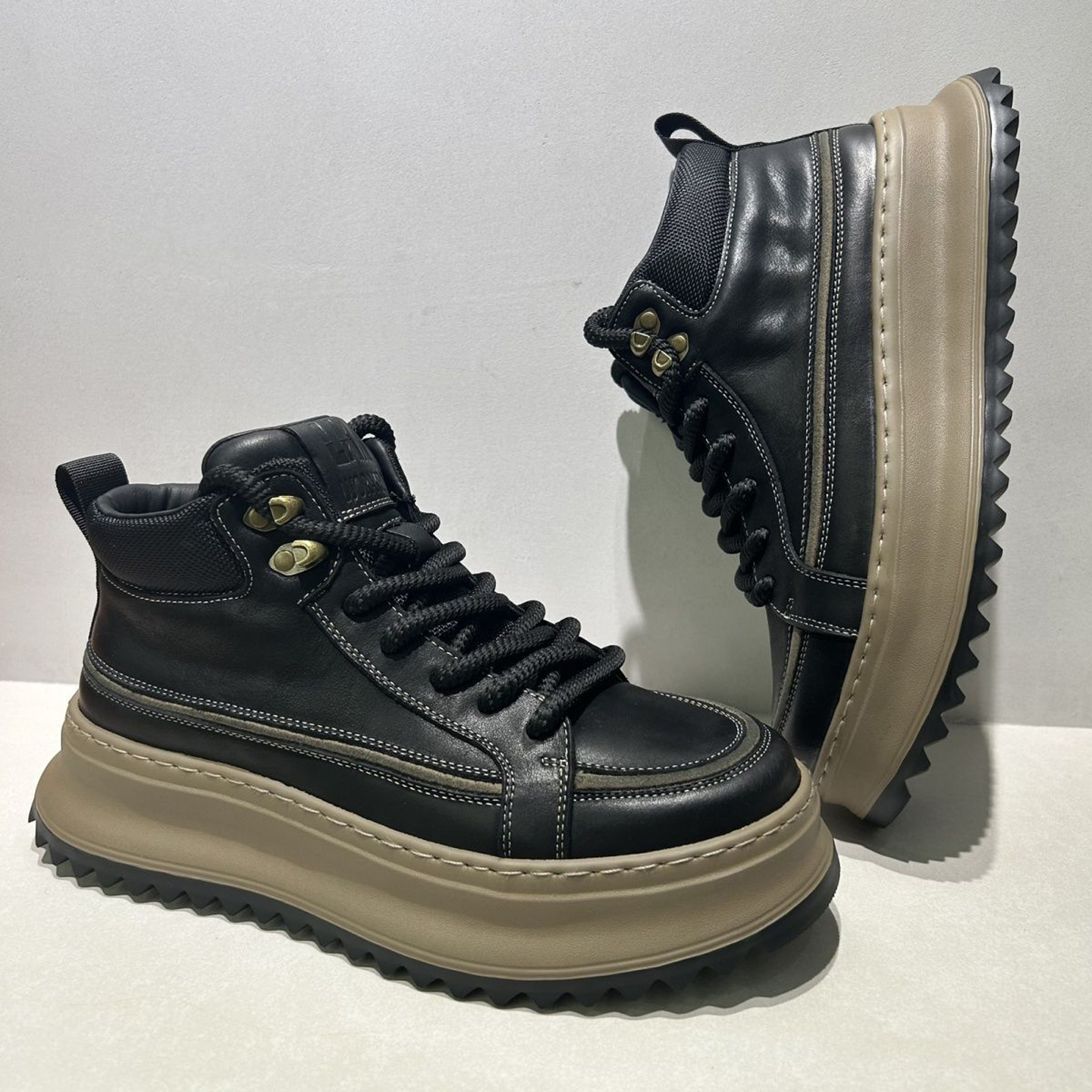 男鞋2025秋季新款高帮鞋运动休闲英伦皮鞋厚底增高黑色工装马丁靴