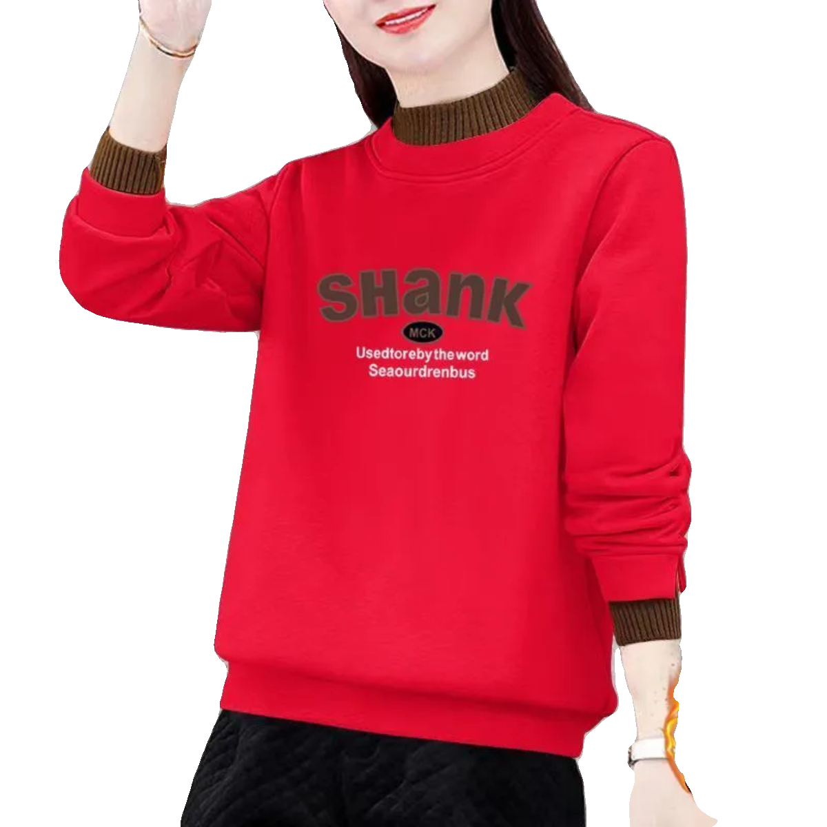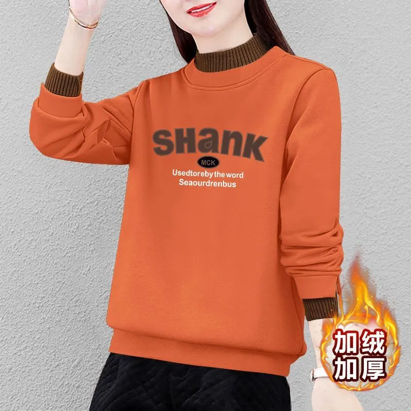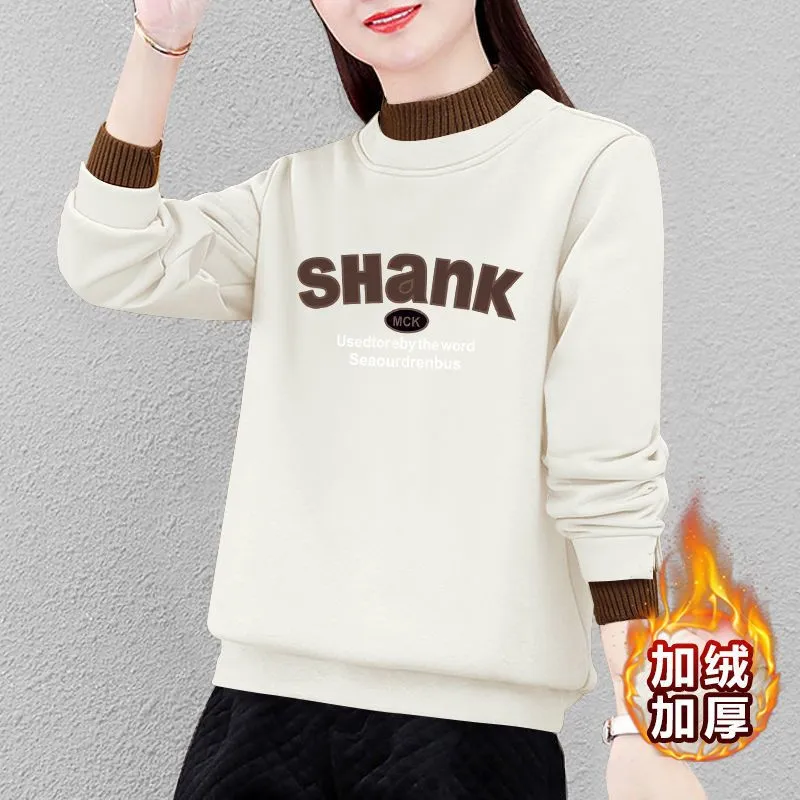 啄木鸟半高领卫衣女2025秋冬季加绒加厚上衣大码宽松假两件长袖女