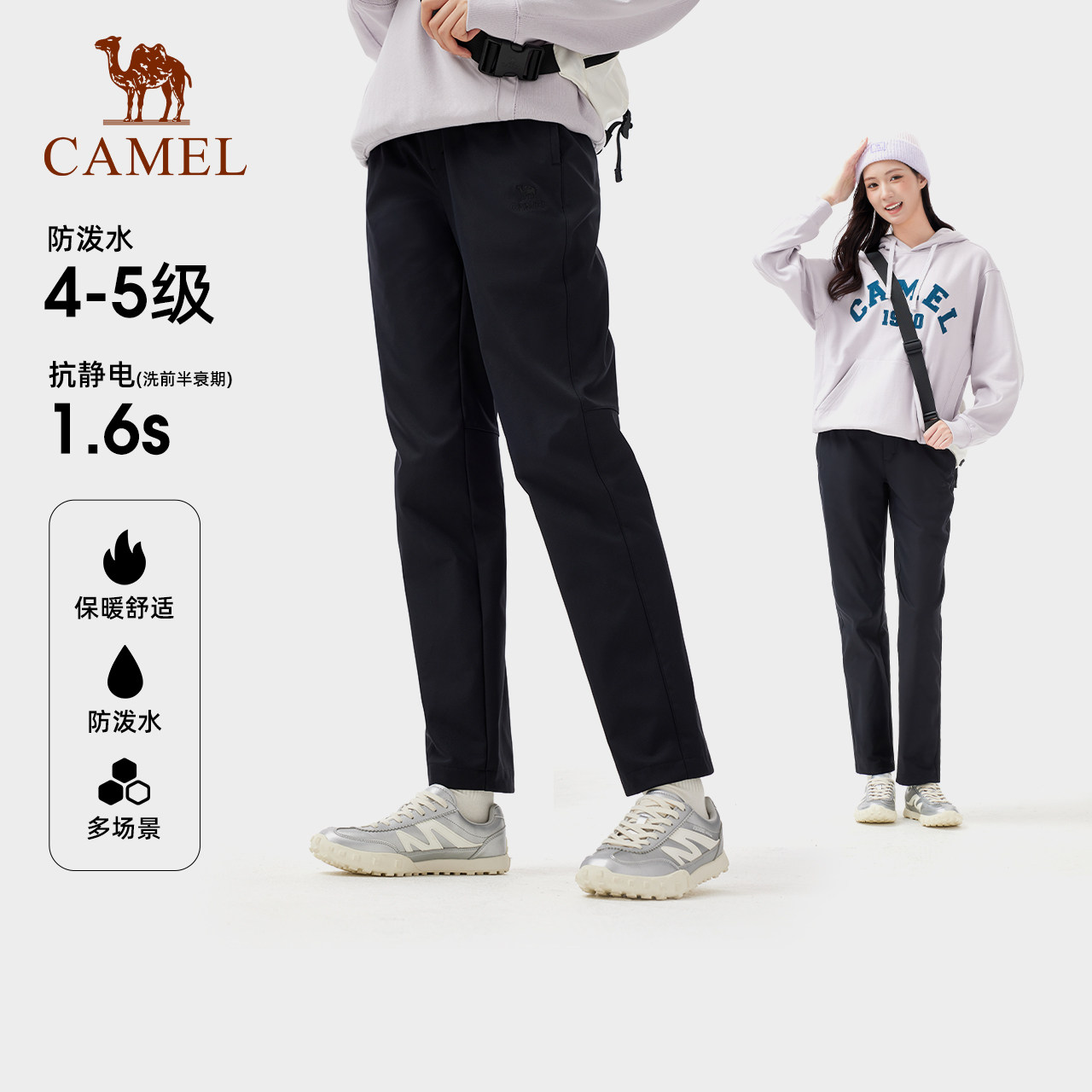 骆驼运动软壳裤女25秋冬防风防泼水加绒保暖弹力直筒冲锋登山裤男