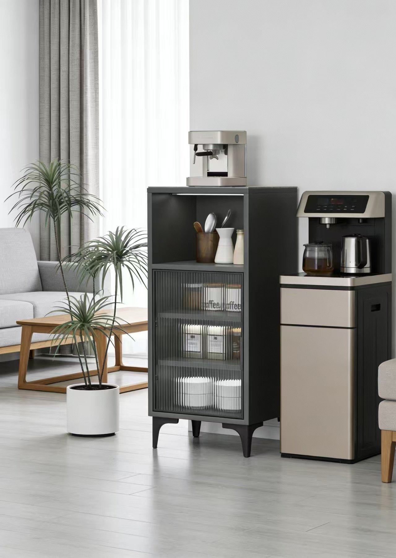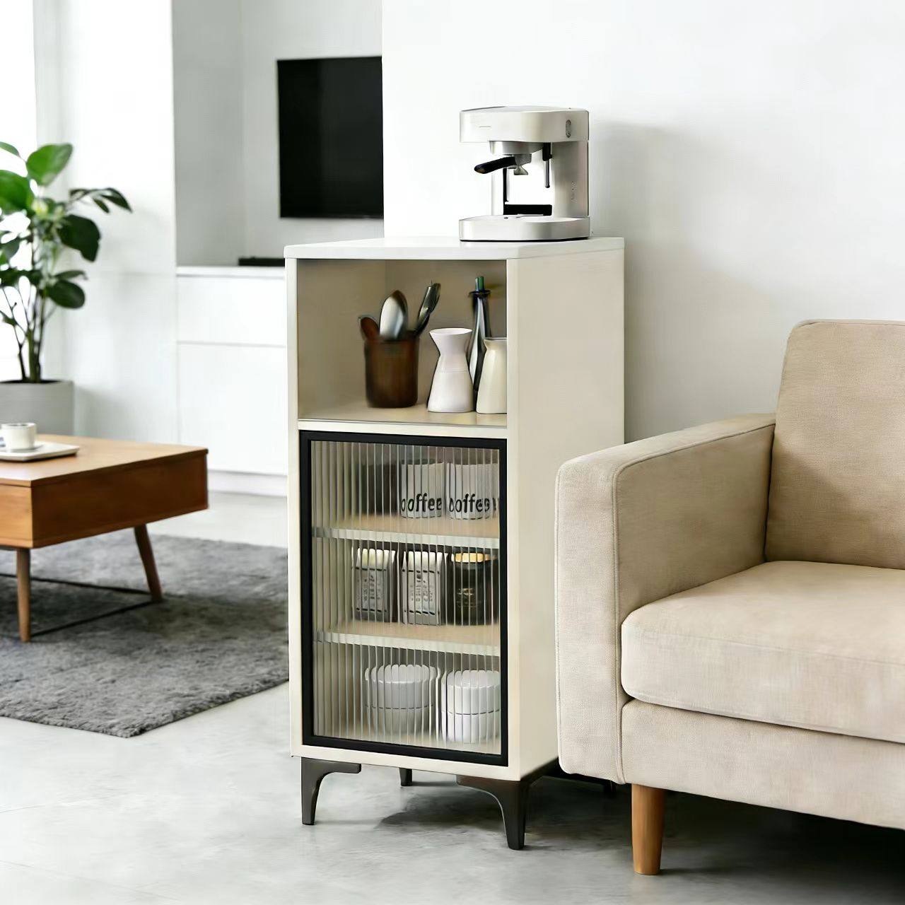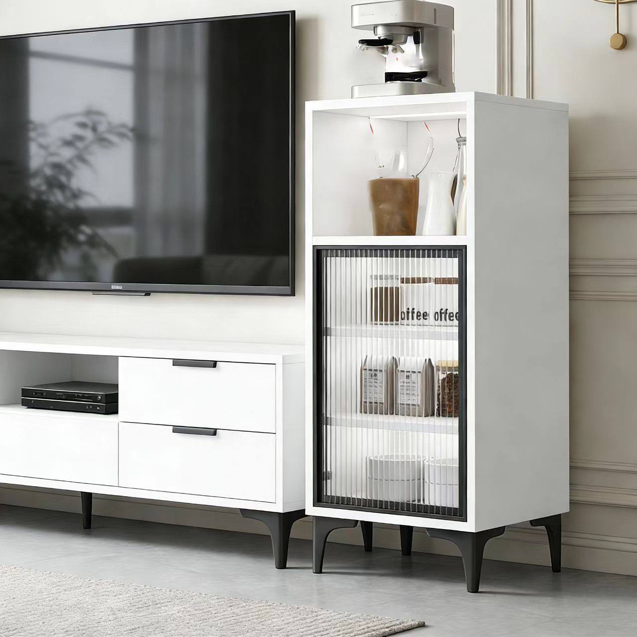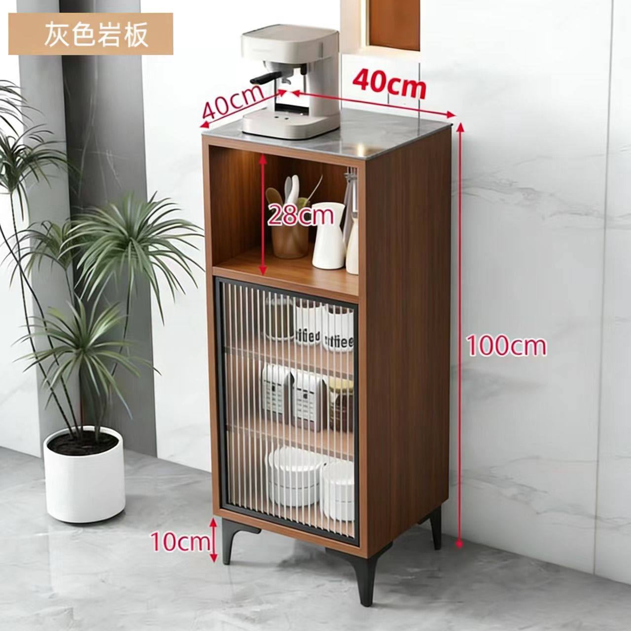 实木岩板客厅茶水柜多功能茶吧咖啡机收纳边柜轻奢窄夹缝储物立柜
