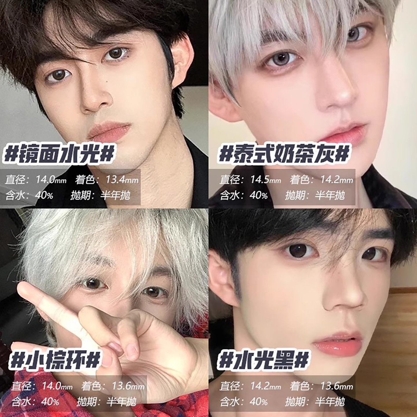 美瞳男款隐形眼镜半年抛男生小直径男士黑色自然带度数近视正品JD