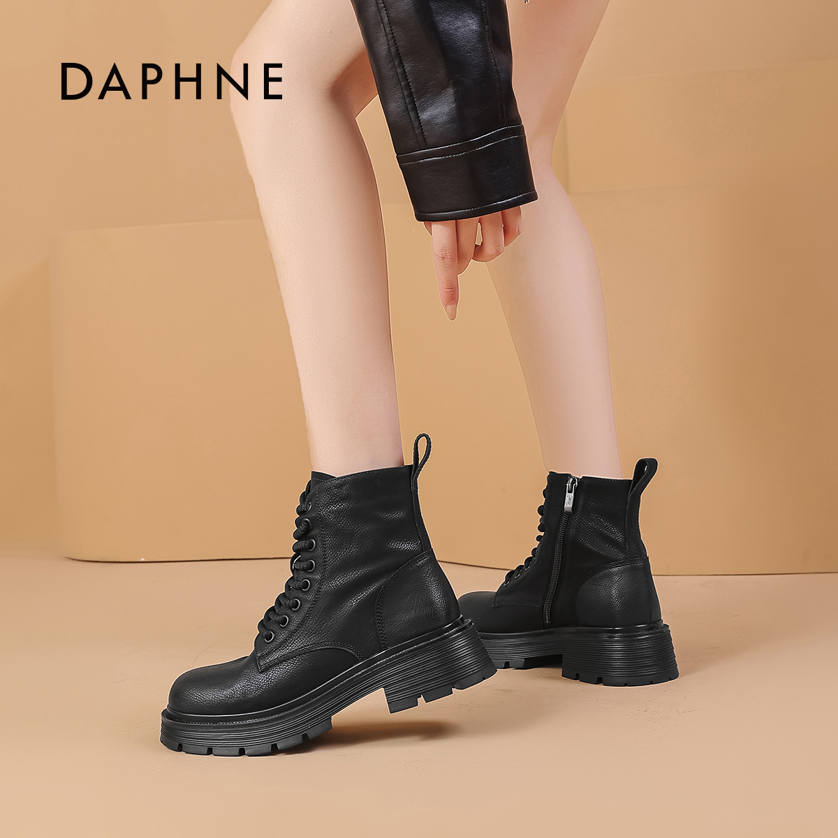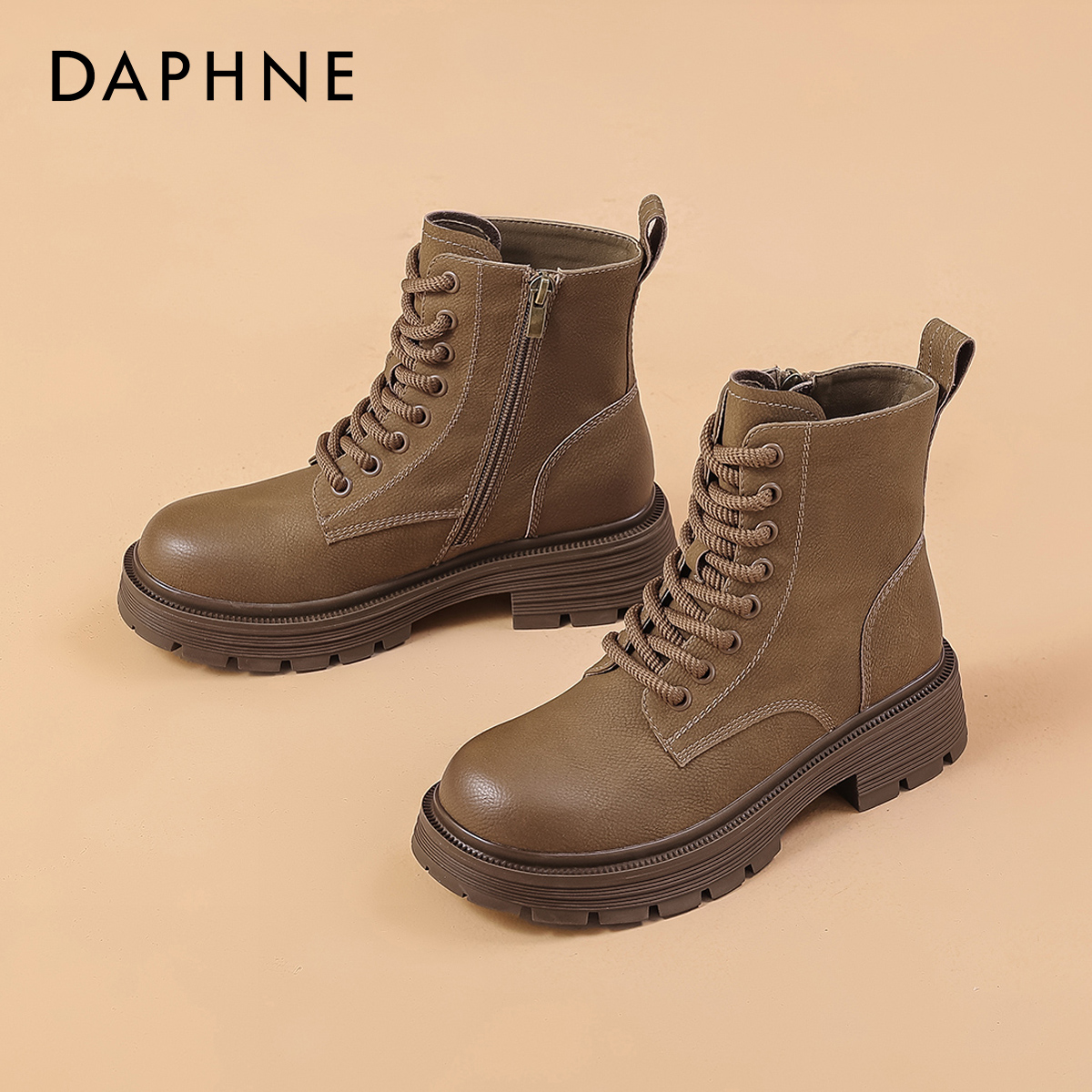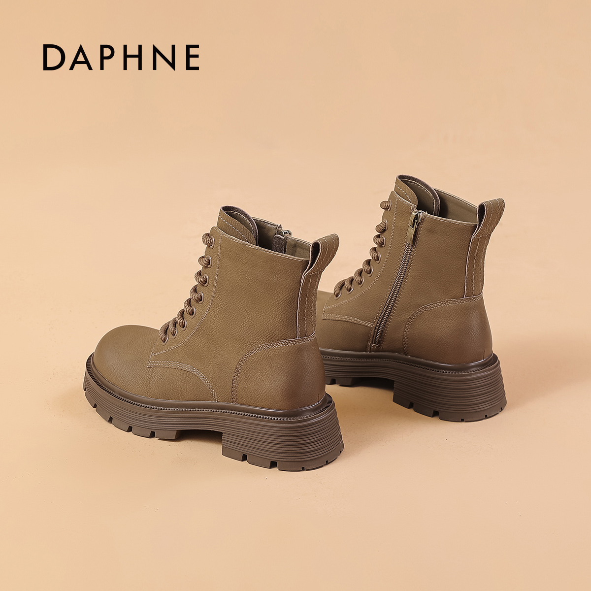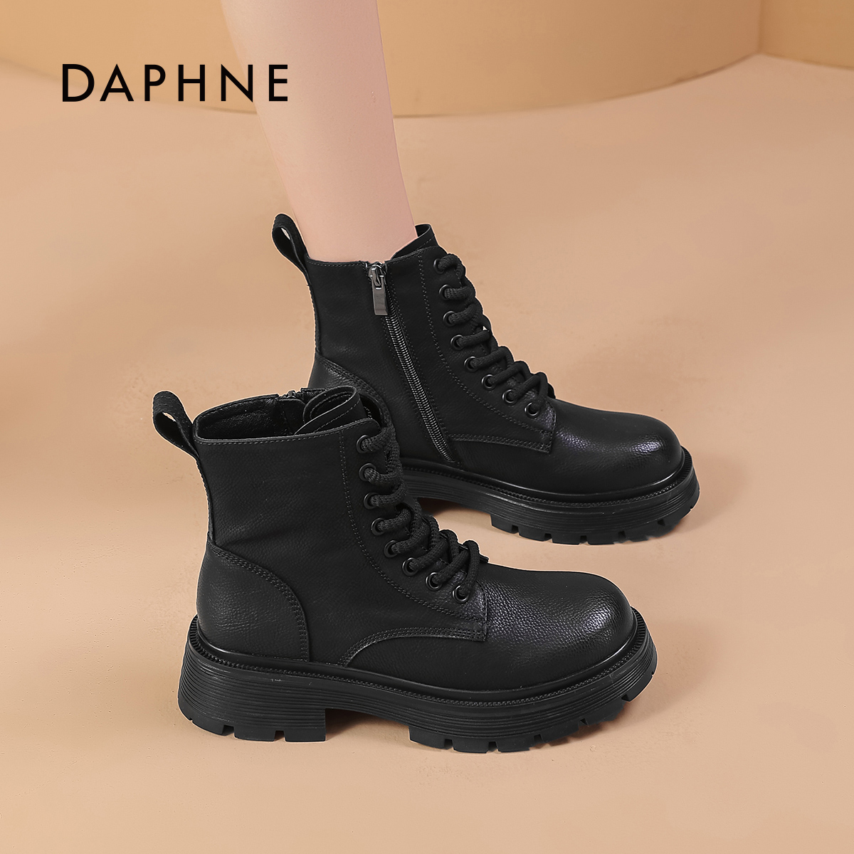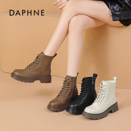 达芙妮厚底马丁靴女2025新款秋冬季英伦风侧拉链复古增高时尚短靴