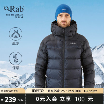 RAB睿坡Neutrino Pro男士800蓬鹅绒保暖防风抗撕高山羽绒服QDN-95