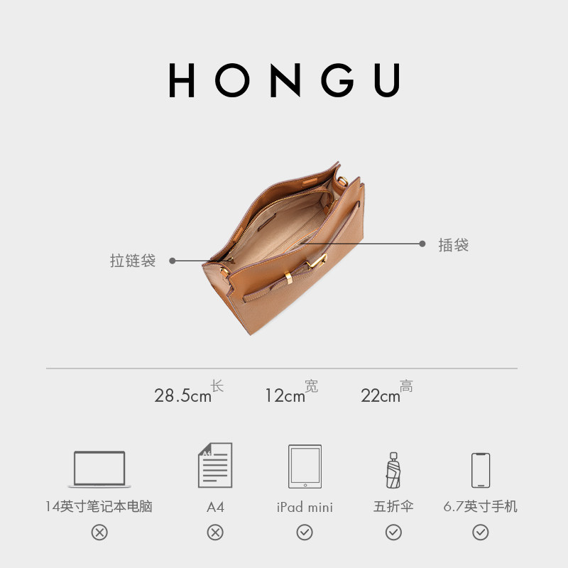 红谷包包2024新款牛皮单肩腋下包百搭通勤大容量斜挎托特包女士包