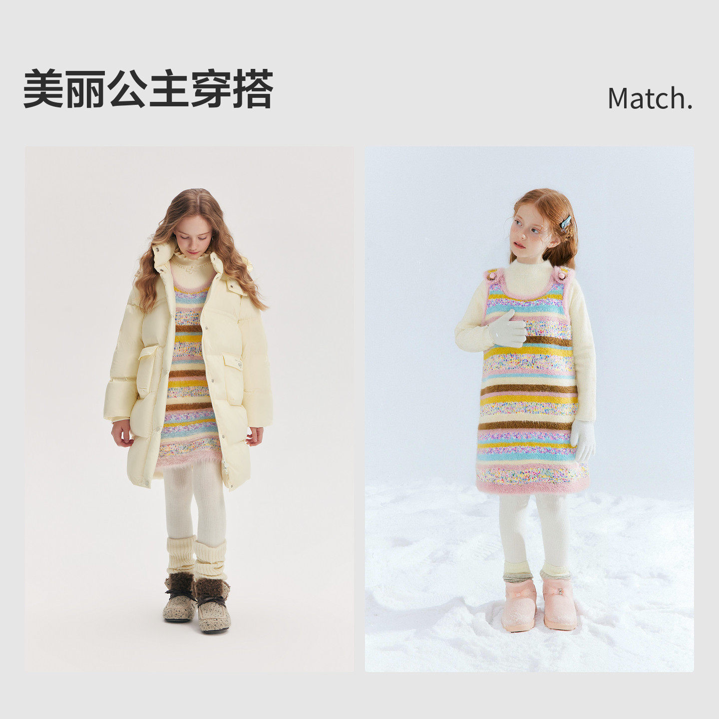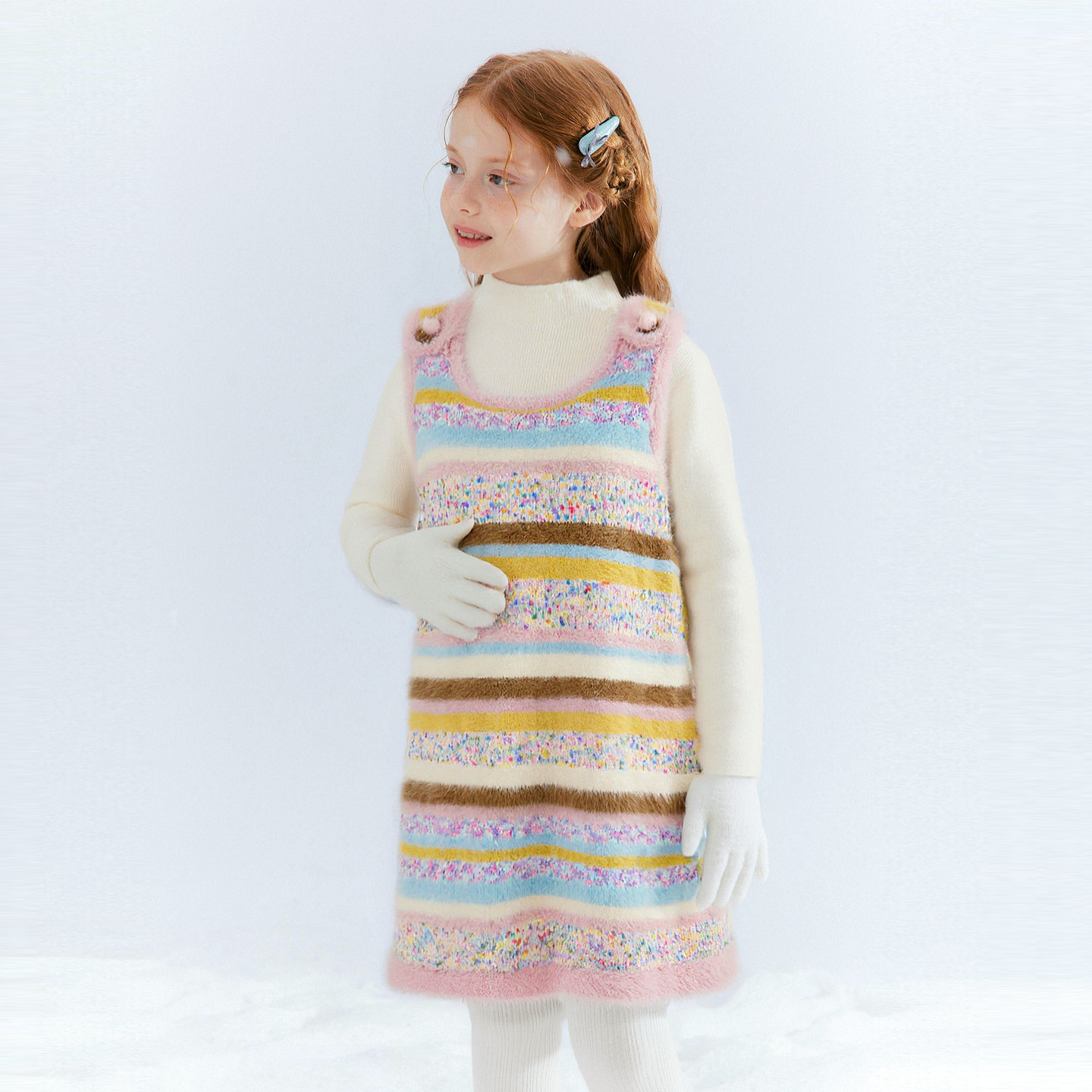 笛莎童装女童连衣裙2025秋冬装中大童儿童条纹加绒公主背心裙子
