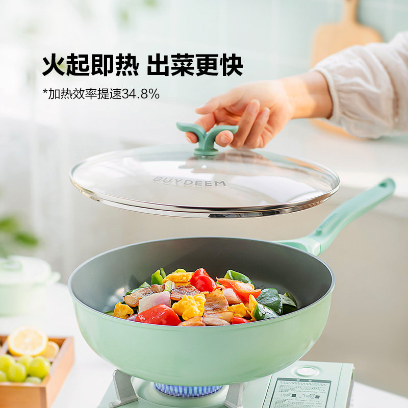 【新品上市】北鼎正品春芽30cm煎炒锅不粘锅炒菜锅陶瓷家用电磁炉