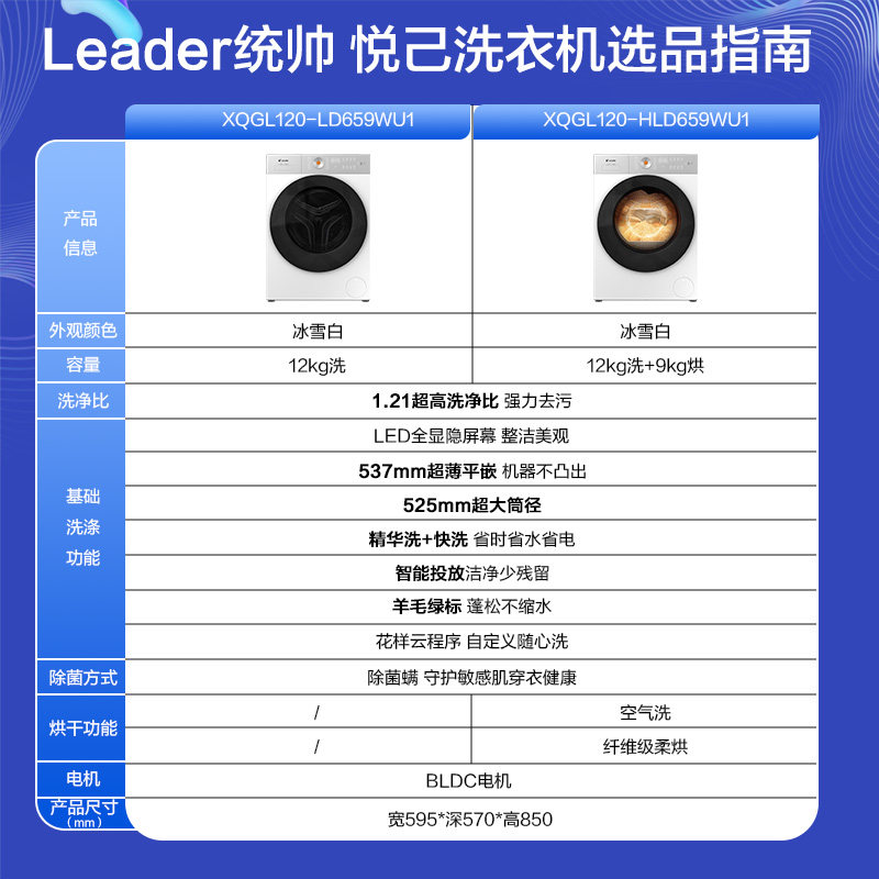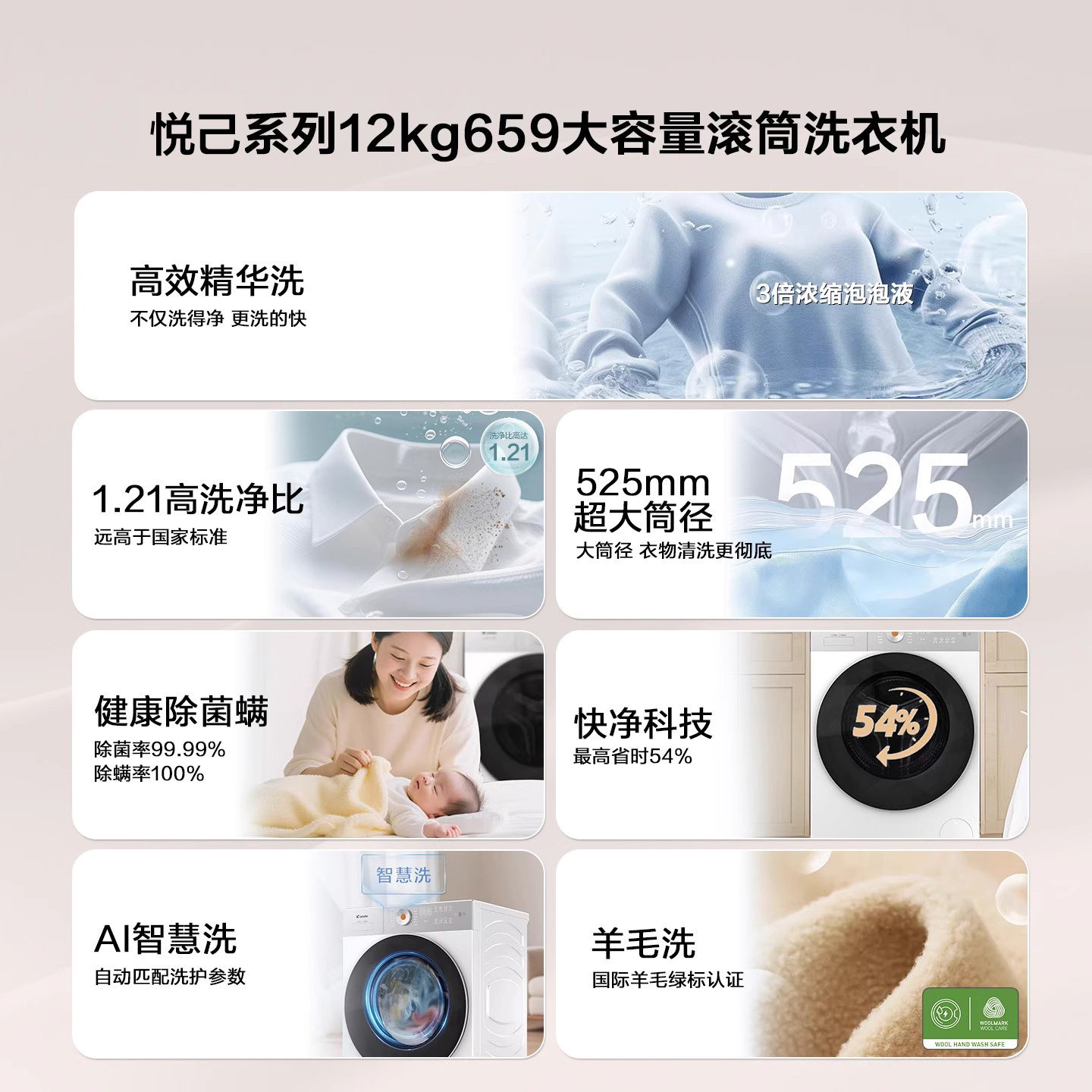 换新补贴海尔出品统帅12公斤滚筒洗衣机全自动家用大容量洗烘659W