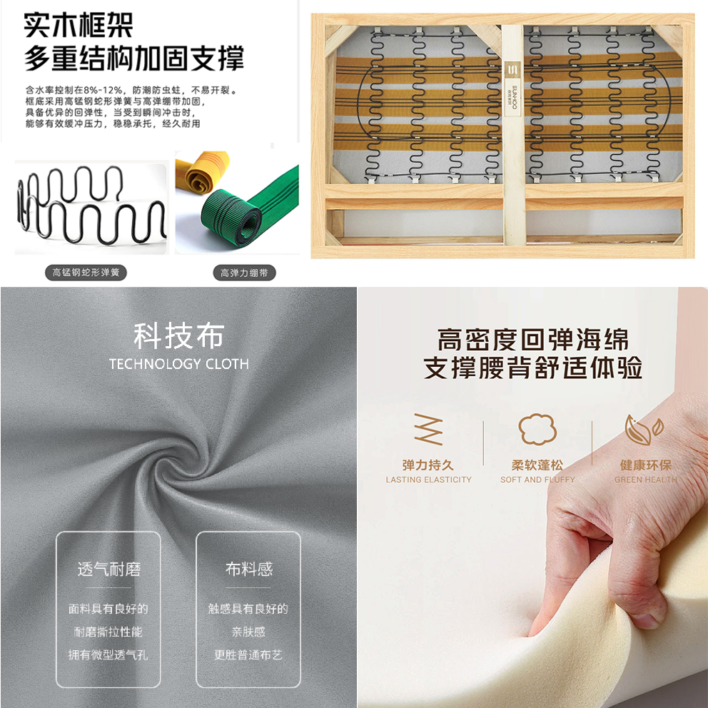 双虎家居11件套 床+床头柜+床垫+沙发+茶几+电视柜+餐桌+四把椅子