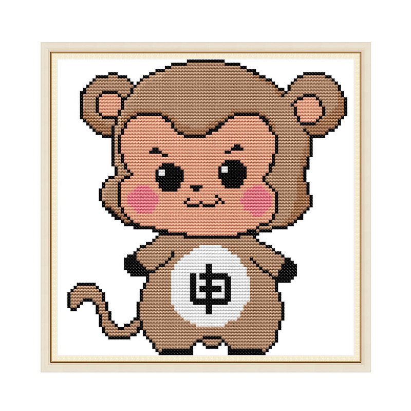 卡通十字绣2024新款猴学生儿童手工小件简单线绣生肖猴子初学新手