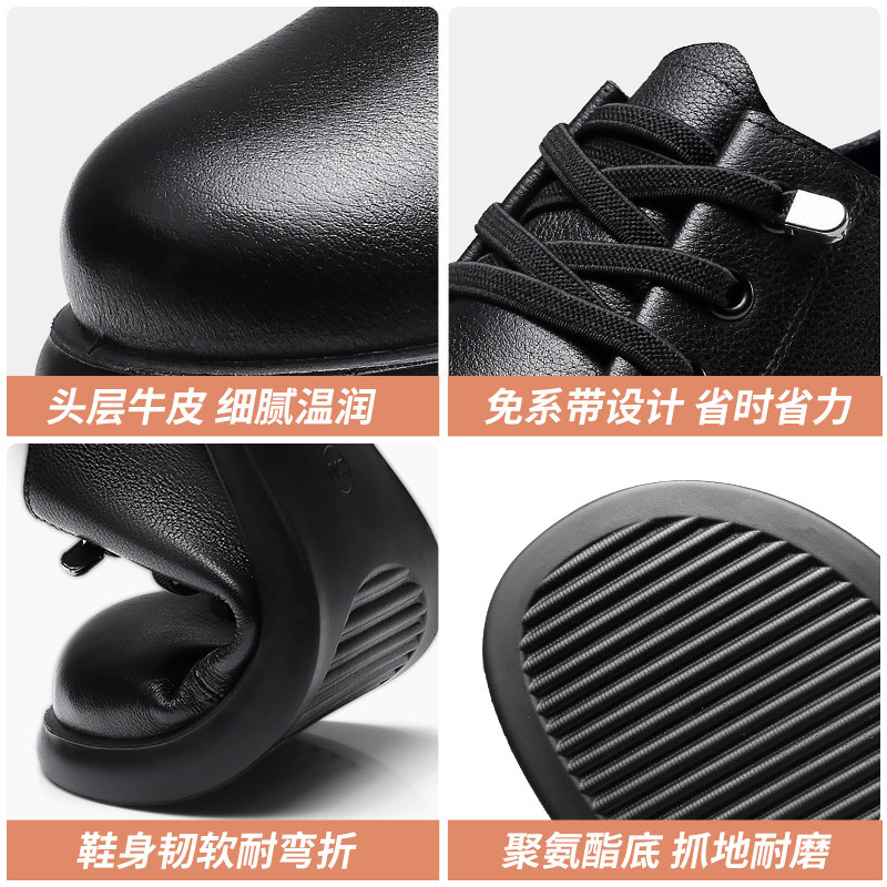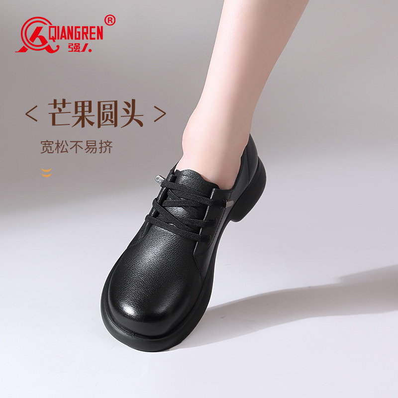 强人3515女鞋真皮系带女单鞋英伦复古圆头小皮鞋通勤工作鞋子黑色