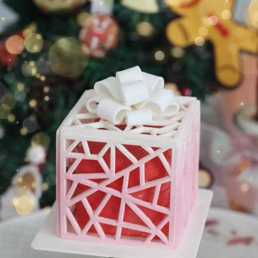 正方形镂空创意圣诞烘焙蕾丝模具装饰硅胶甜品蛋糕礼物盒造型