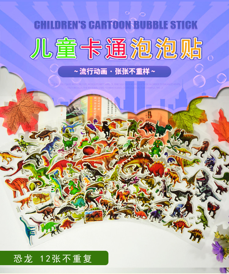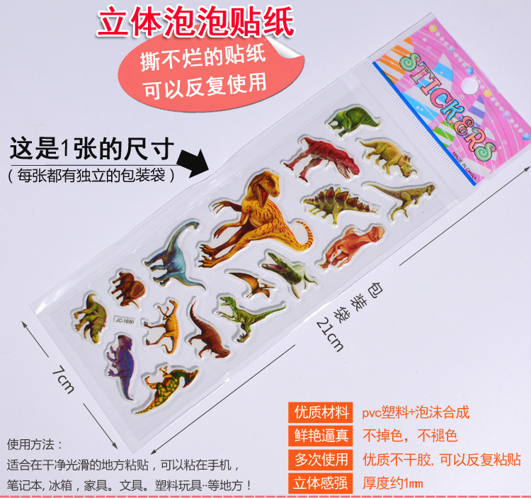 霸王龙恐龙小动物男孩3D卡通立体泡泡贴纸儿童幼儿园奖励粘贴画
