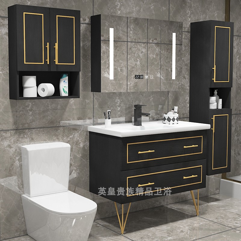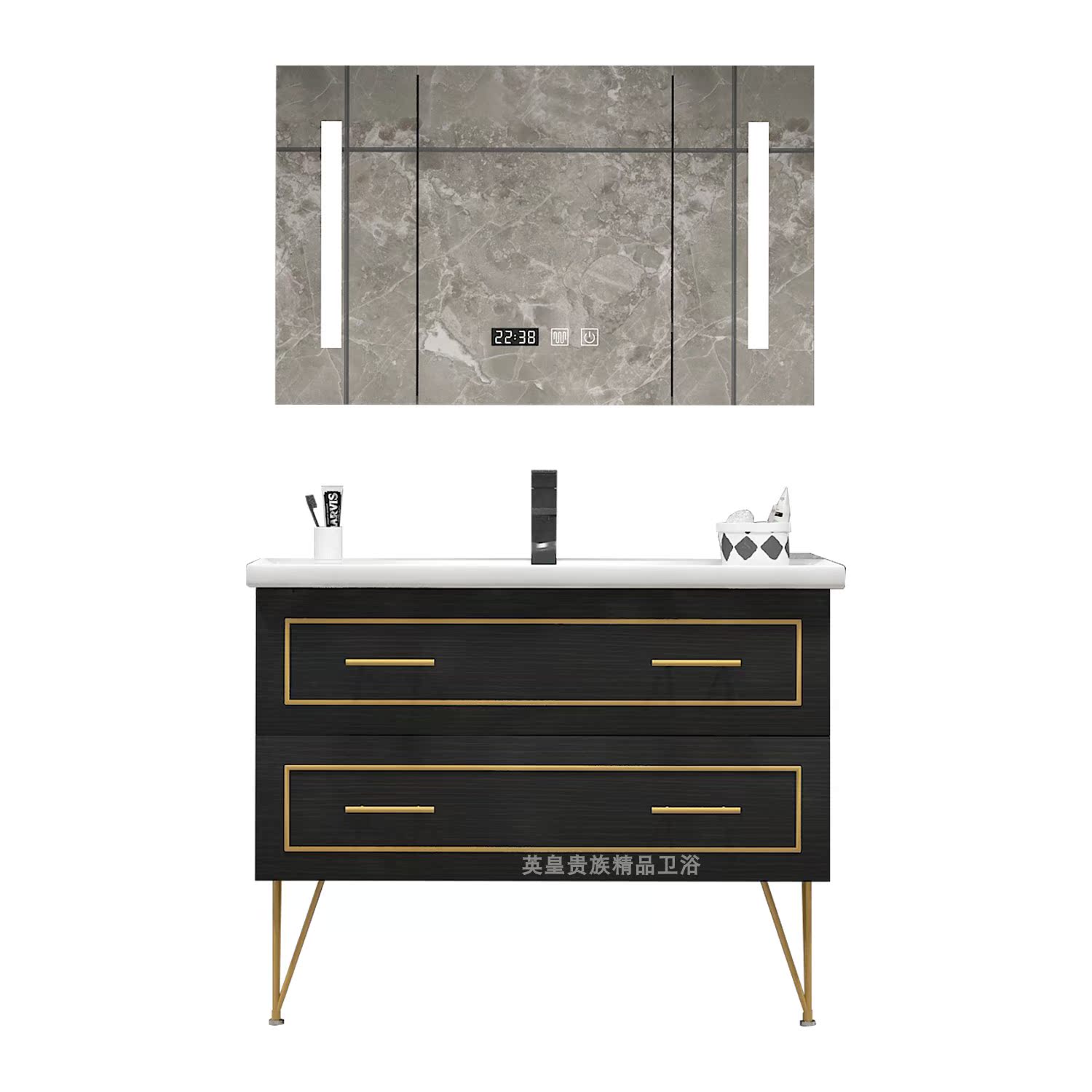 北欧轻奢美式橡木浴室柜实木洗手盆洗脸盆卫浴柜落地洗漱台盆M048