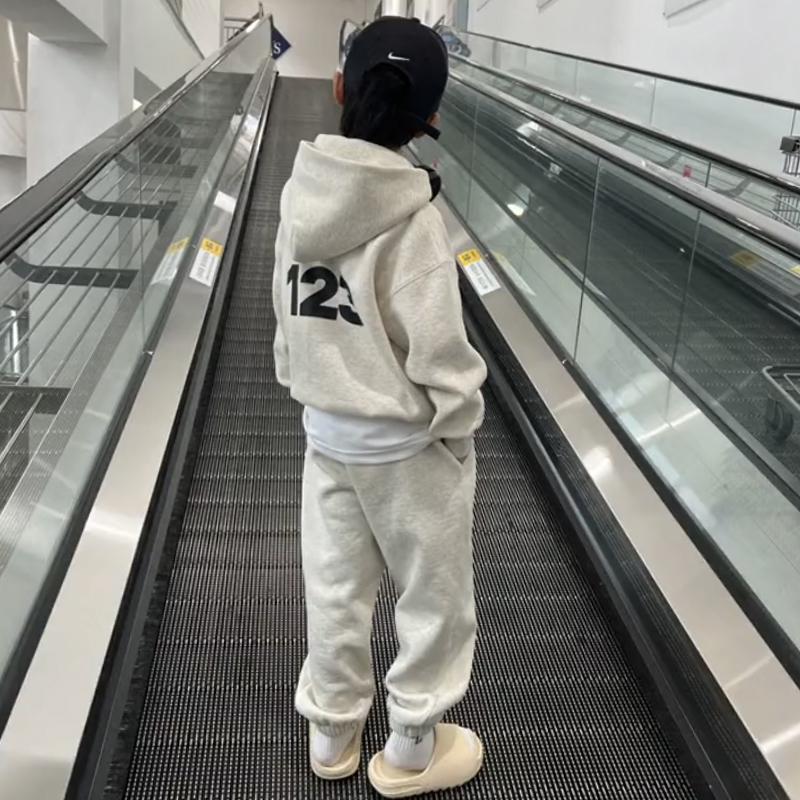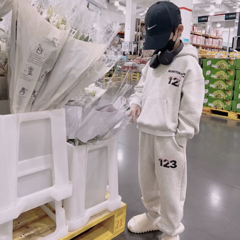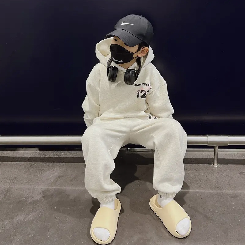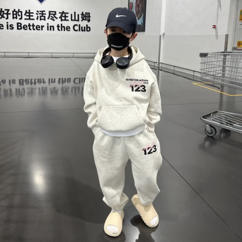 男童连帽套装2025新款春秋装时髦冬季网红运动薄绒卫衣儿童衣服潮