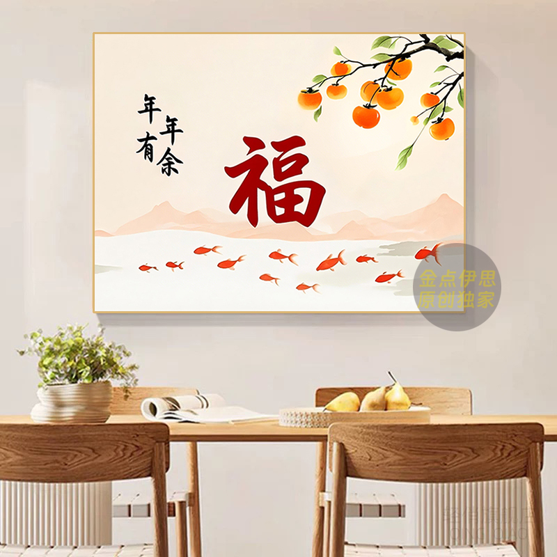 新中式福字钻石画2025新款年年有余手工点贴钻十字绣客厅餐厅满钻