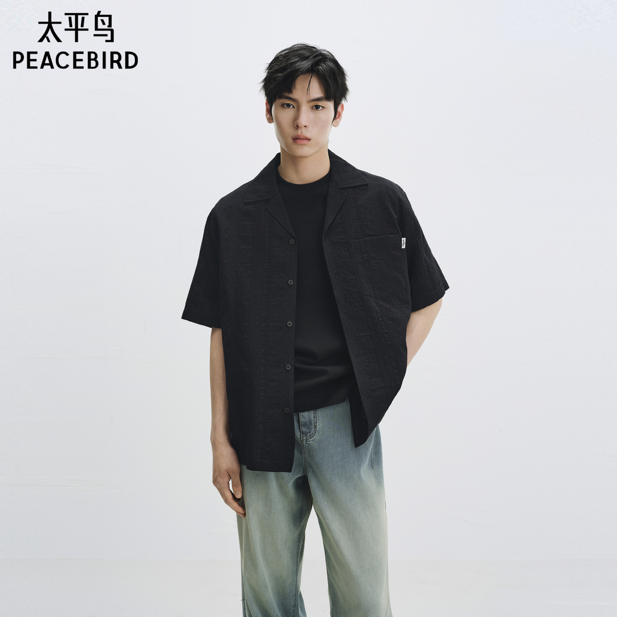太平鸟男装 休闲衬衫2025夏季新款宽松提花肌理短袖衬衫男士衬衣