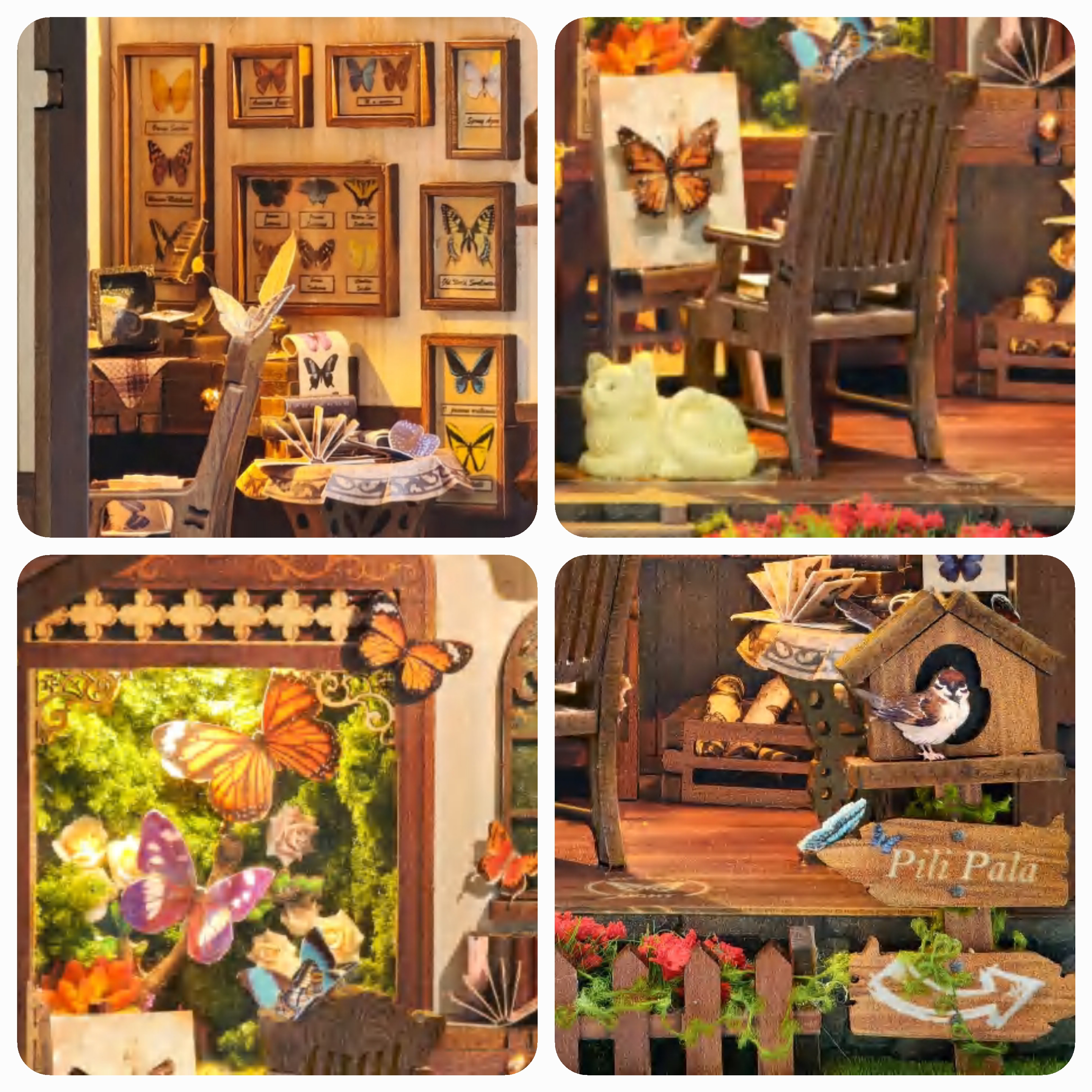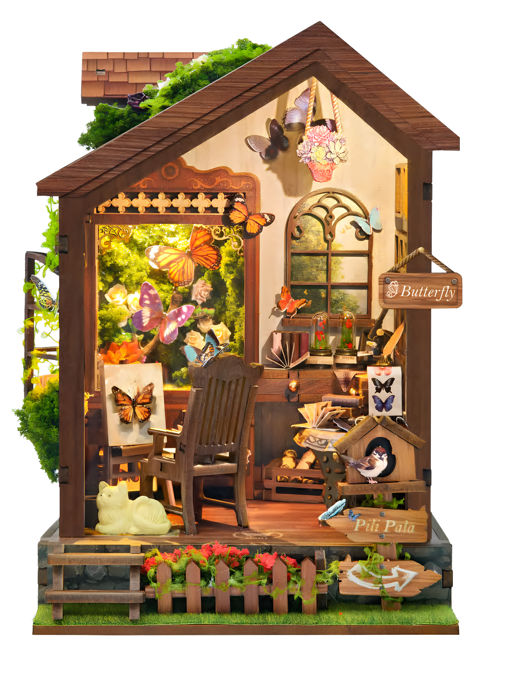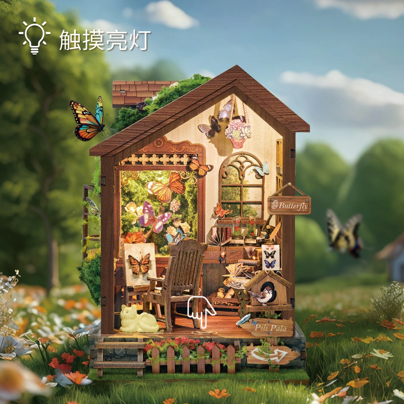西西弗鲸空木质蝴蝶之家灯光屋拼装手工小屋积木模型摆件礼品礼物