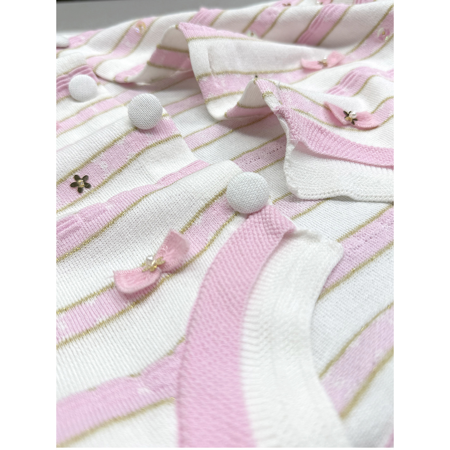 优雅法式!蝴蝶结金丝条纹羊毛针织开衫短袖上衣女 GZ0616~JS