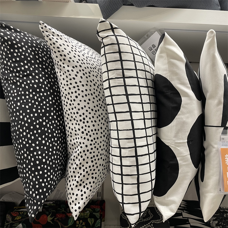 IKEA宜家 比约劳玛 靠垫套沙发抱枕套纯棉材质北欧简约黑白图案