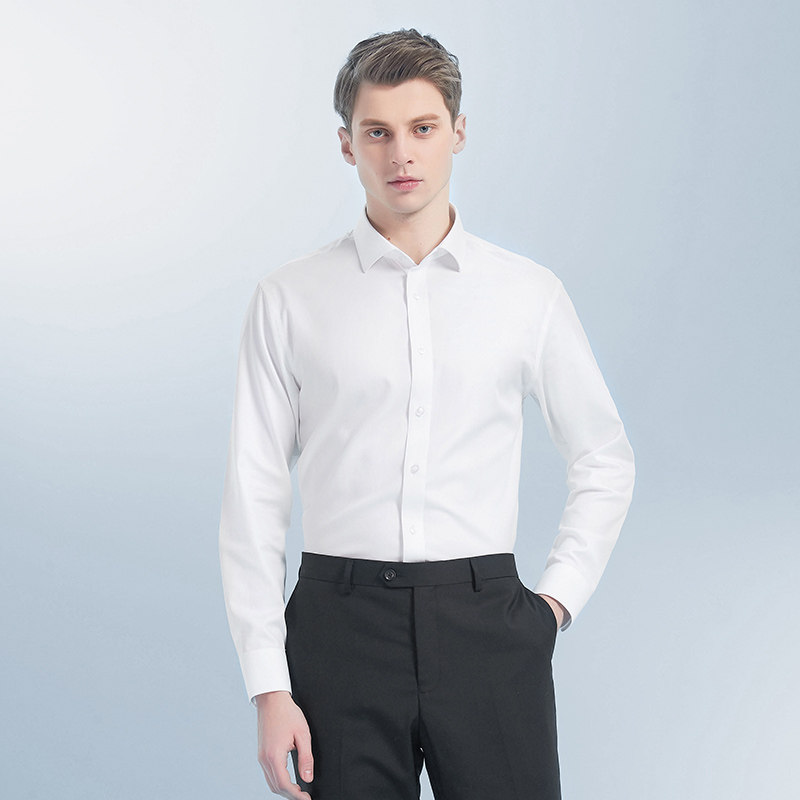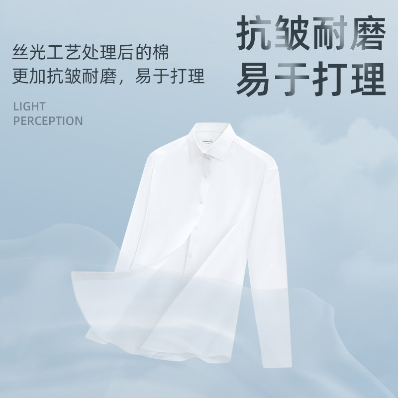 【商场同款+丝光】乔治白春秋男士长袖衬衫棉涤混纺白色商务衬衣
