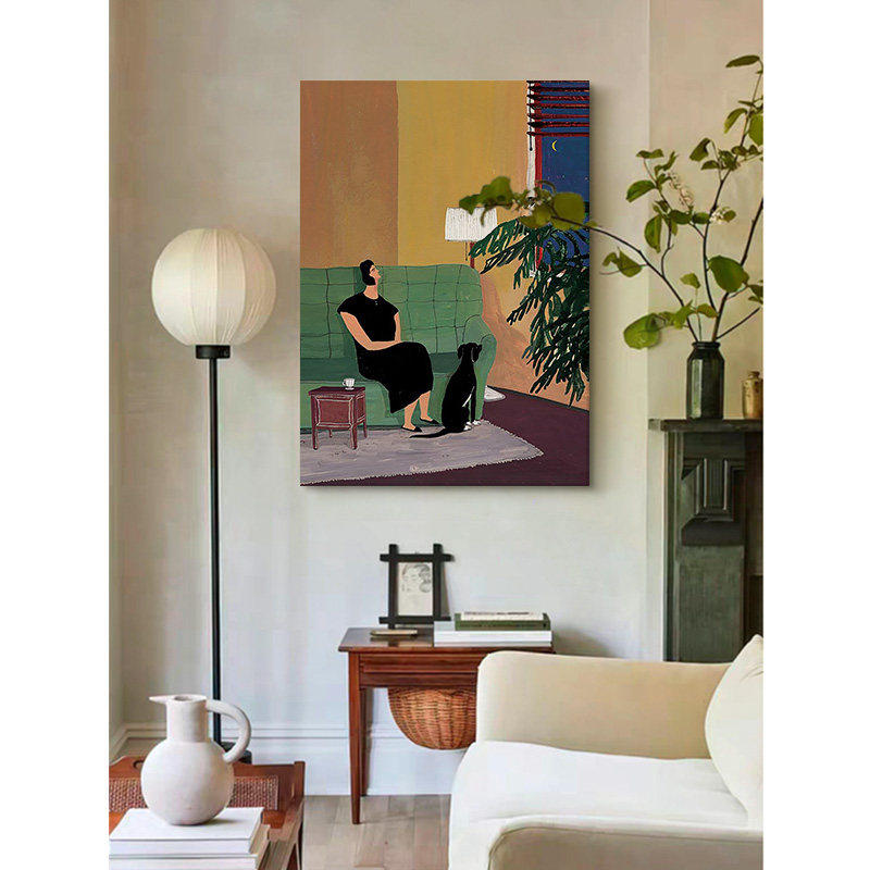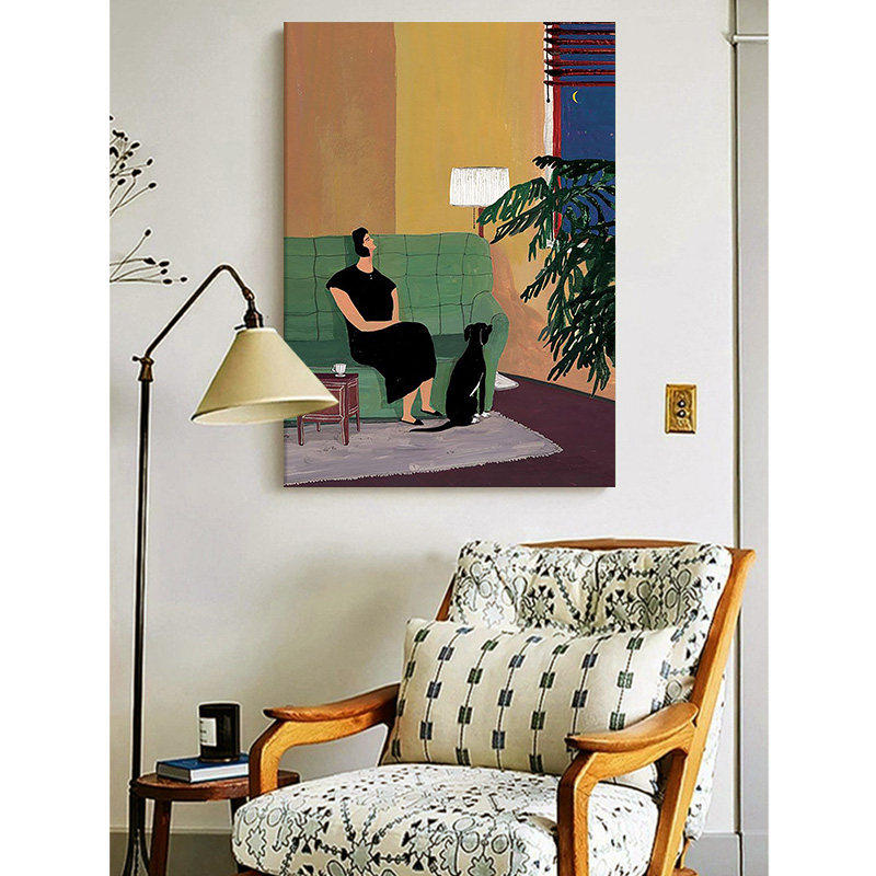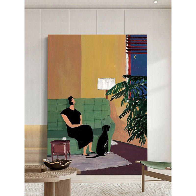 中古风客厅装饰画温馨抽象人物纯手绘油画玄关复古马蒂斯小众挂画